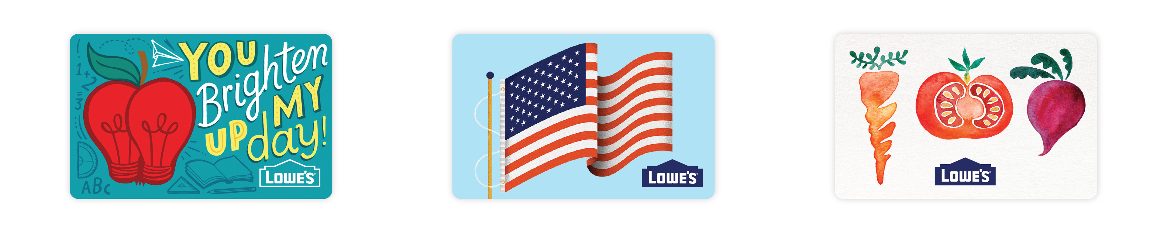 ILLUSTRATORS: Cat Coquillette: Mom you’re amazing, Honey I Do List, Garden Card; Starla Halfmann: Floral Mom; Bailey Sullivan: Flag; Mary Kate McDevitt: Mom - sun, Merry Christmas in lights; Adam Grason: Dad beard; Kate Forrester: Teacher; Ryan Hayslip: Lowe's pool, Lowe's key; Lowe's grass